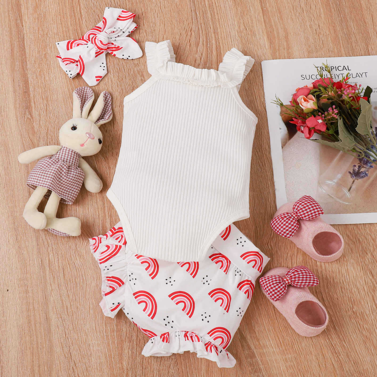 Girls' Fashion Sling Pit Striped Harness Printed Shorts Set